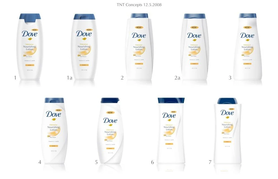 With the launch of Baby Dove in North America, the Brand teams wanted to see side-by-sides of the new packs with new caps and pumps.